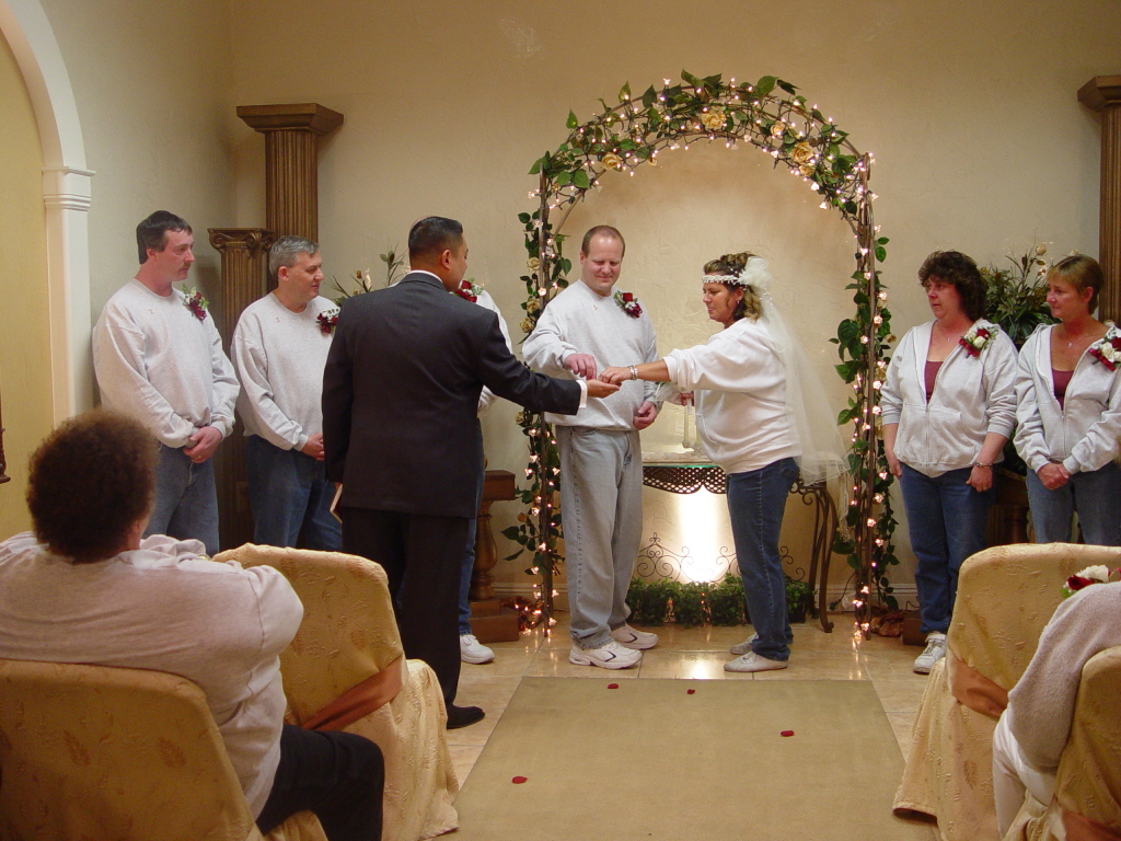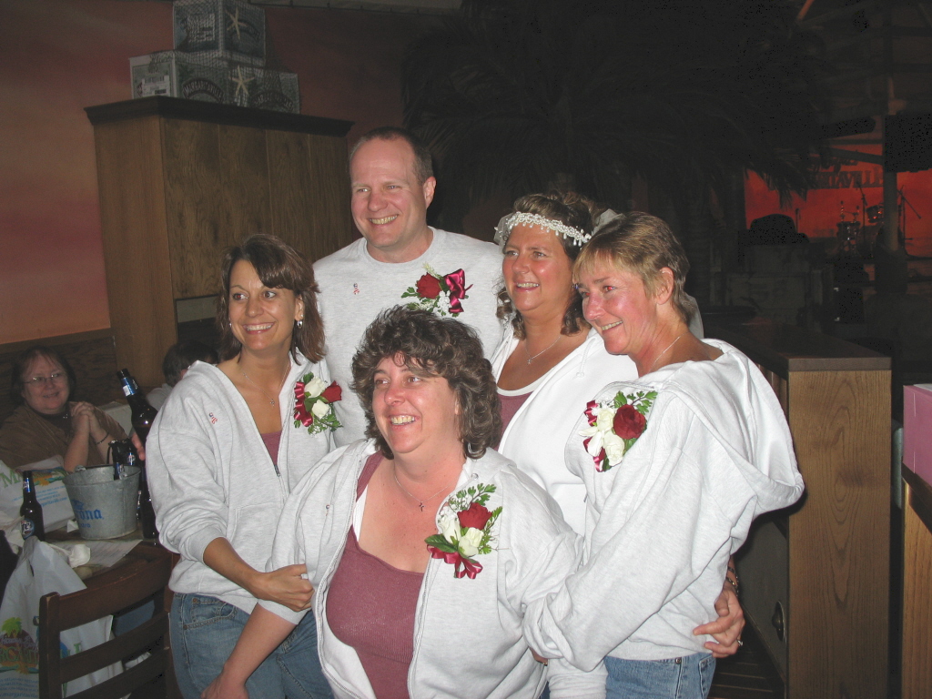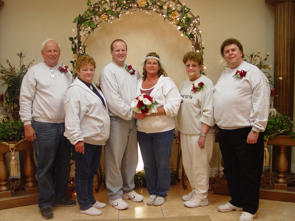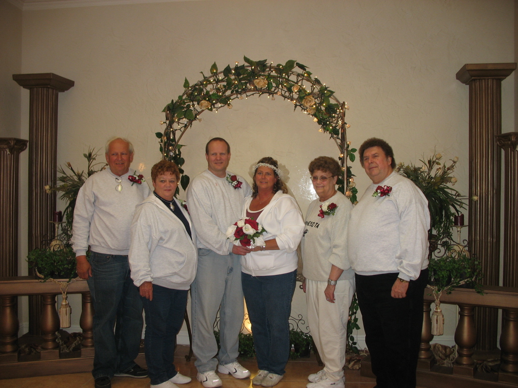 TO RT, JUSTICE OF THE PIECE, BRIAN (STACY'S HUSBAND) IAN & JJ (FRIENDS OF DAVES), STACY, VICKI, CHRIS (FRIEND OF STACY & LES) TRACY (STEP SISTER) |